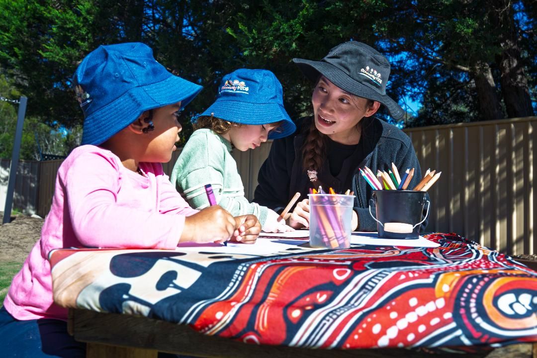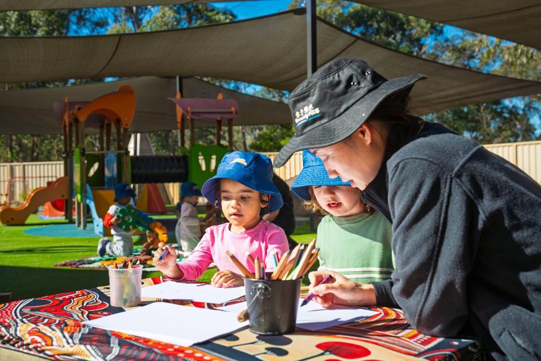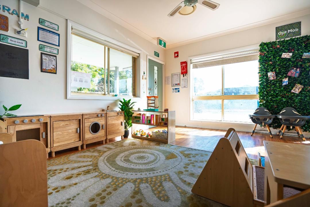Our purpose-built daycare and preschool centre in St Helens Park offers innovative early learning programs in a safe, nurturing environment. Our St Helens Park childcare centre features a beautiful outdoor environment with a veggie garden, purpose-built yarning circle, blue court with bike track, extra-large sandpit, and natural surroundings backing onto bushland. Inside, we offer a purpose-built space with an interactive whiteboard and a variety of natural and multicultural resources. Our long-standing team of educators with many years of experience create a calm and comfortable environment. Our Bachelor-qualified Early Childhood Teacher delivers a Government-approved Preschool program that prepares children for a smooth transition to school. We offer a Soccer Joey program, regular community guest visits, and diverse extracurricular activities, including cultural programs, multicultural shows, and dental visits.
